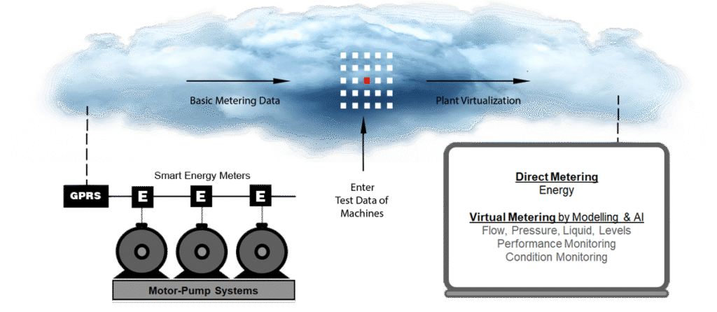 Condition monitoring using basic metering with performance modelling Establish complex interrelationship (Fluid | Water | Energy | Asset nexus) |